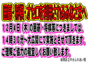 12月4日(木)囲碁・将棋のご利用については、下記の通りとなります。
