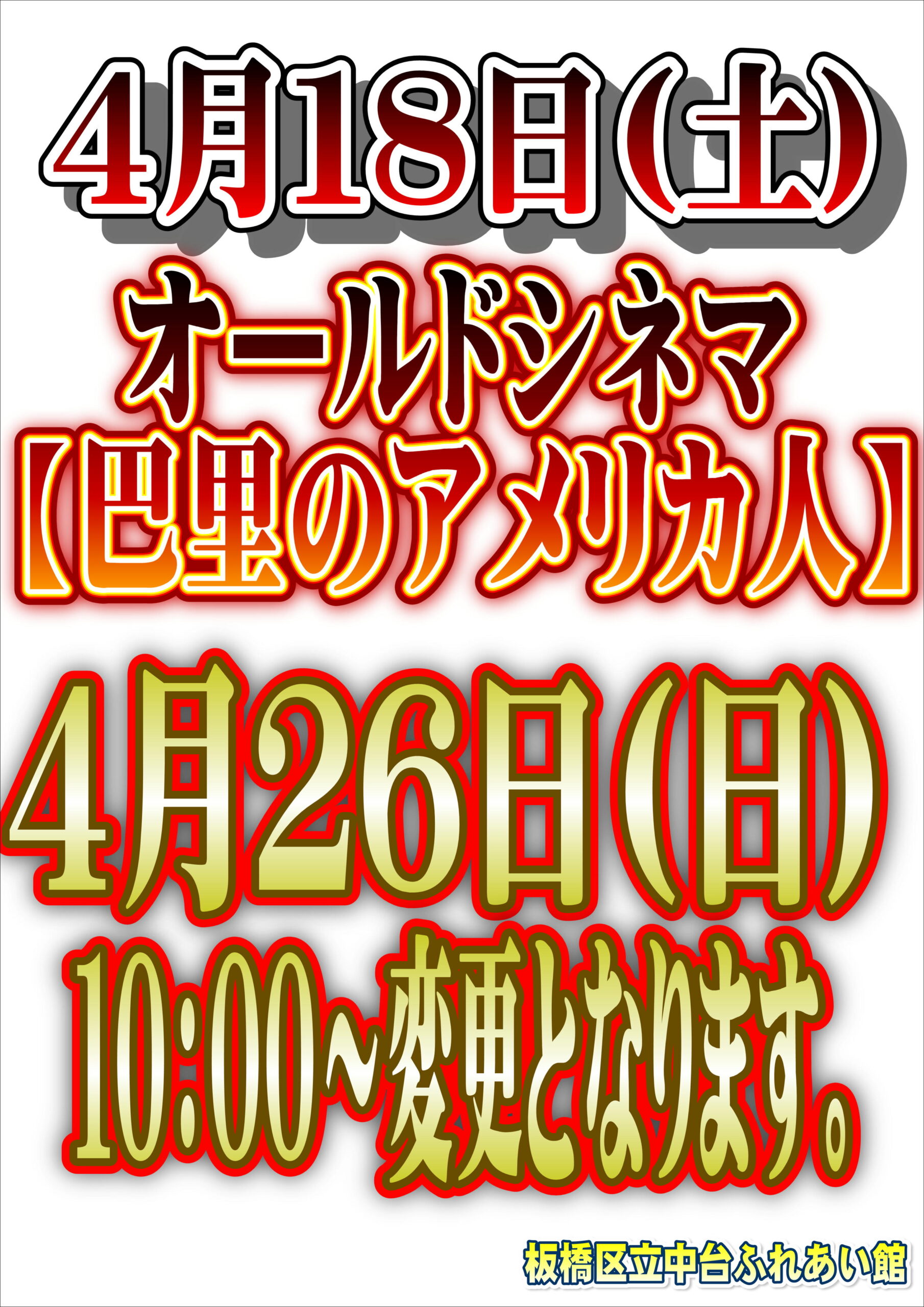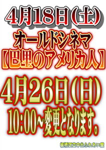 2026年4月18日(土)オールドシネマは日程変更となりますので、下記の通りとなります。